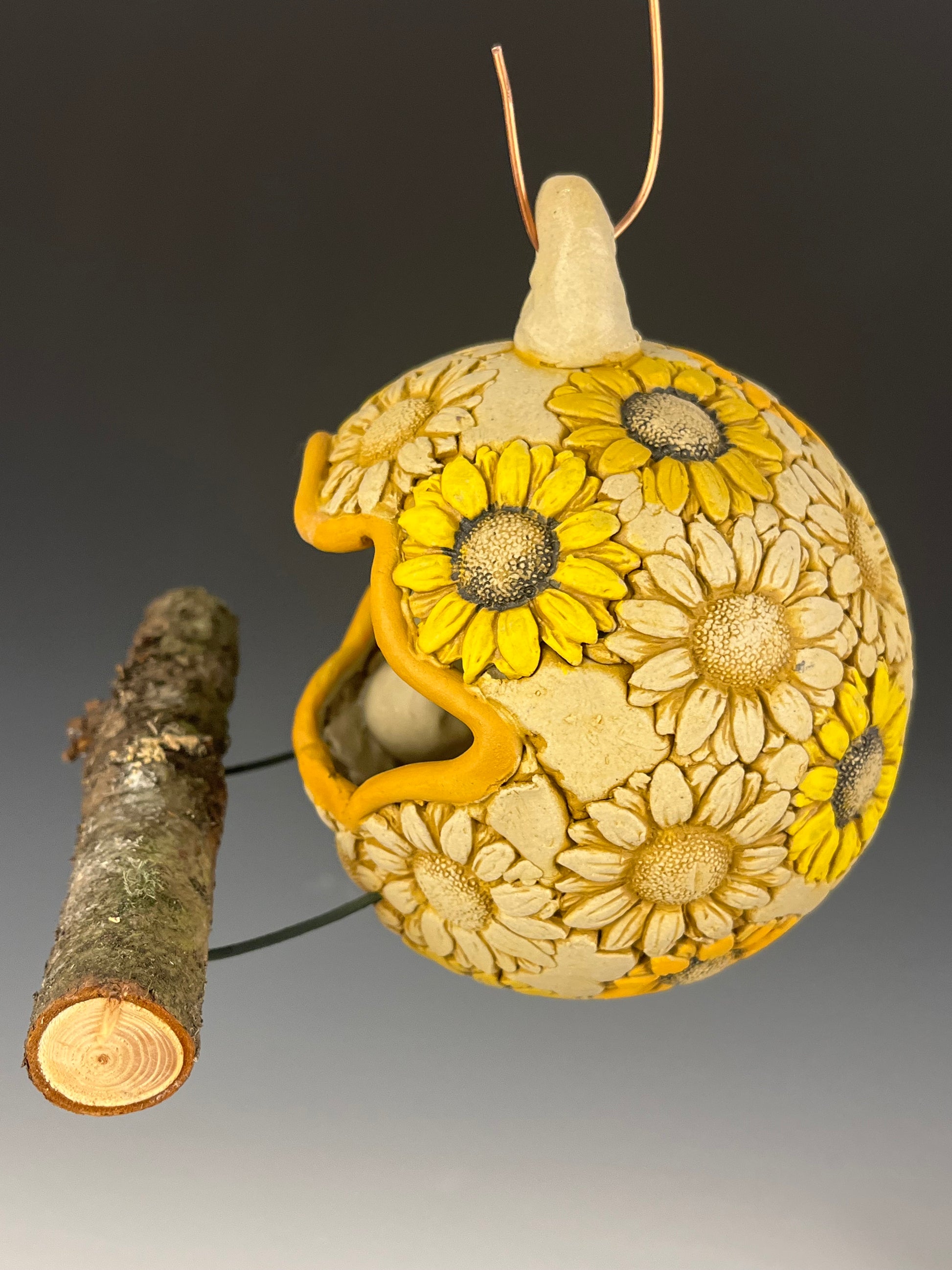 13 cm dia Bird Feeder designed to hold homemade or store bought suet. Stuff the suet inside the feeder, hang in an outdoor location for birds to feed on. This piece is dishwasher safe if you remove the wooden perch prior to washing.