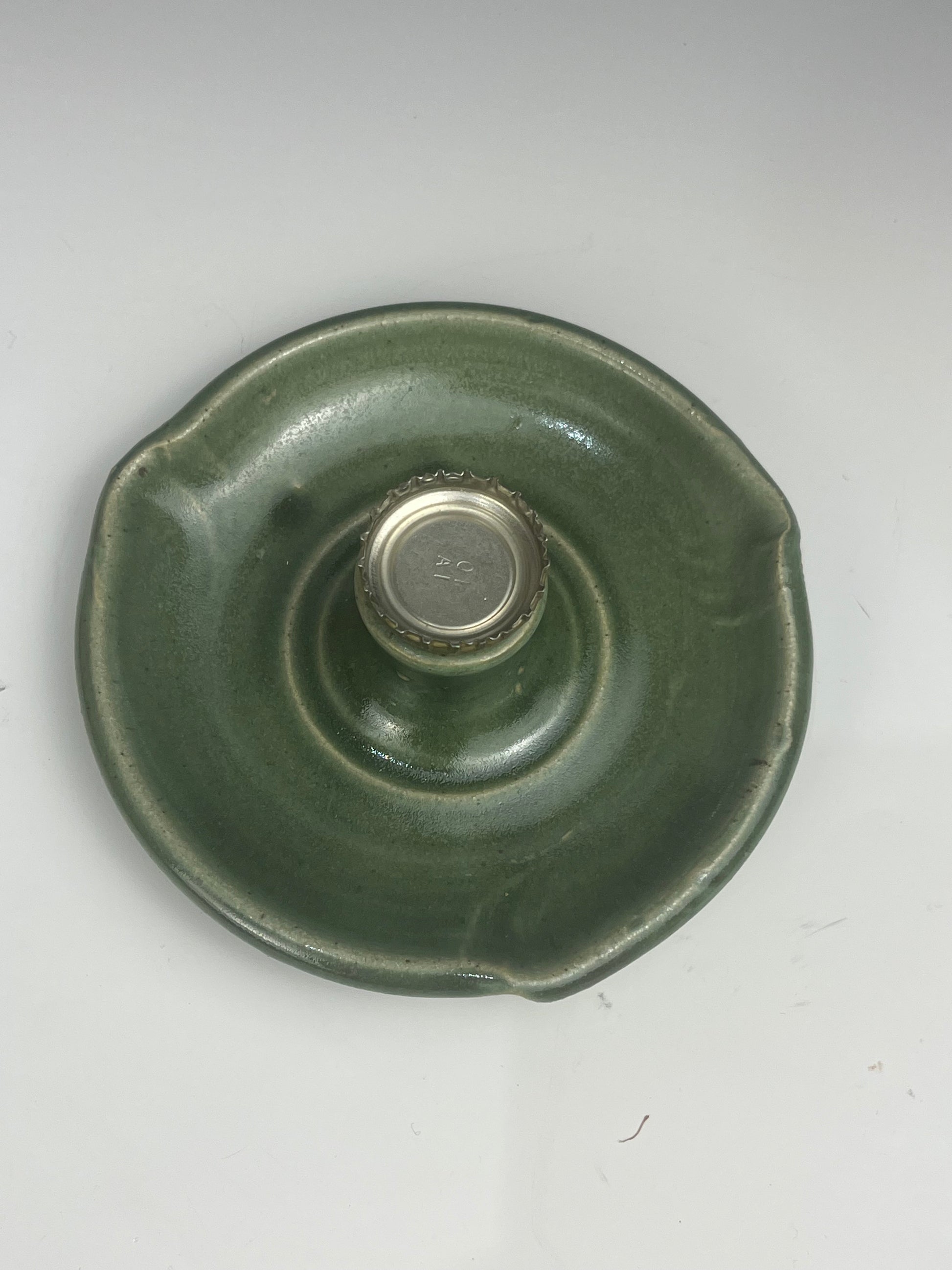 Forest green magnetic pedestal style soap dish 6cm high, 12cm dia. This is a different take on the arched or hanging soap dishes, they are less fragile and easier to ship while also keeping your soap high and dry. These soap dishes were born from a desire to make bar soap a pleasure to use. These dishes make your soap last longer and prevent that slimy mess traditional dishes tend to accumulate. They are truly a game changer in terms of happiness with bar soap.