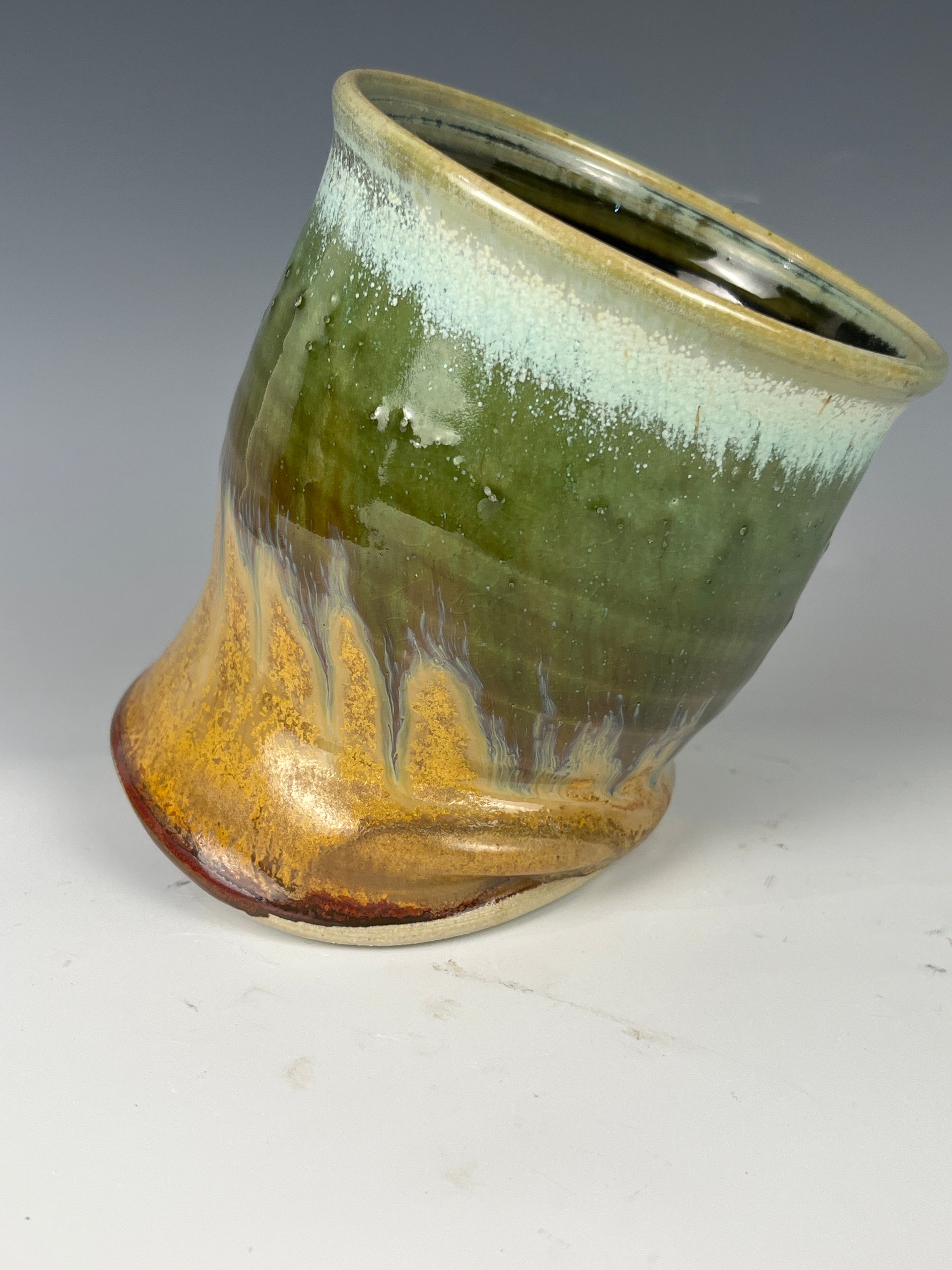 Rust and green salt pig. 11cm x 9cm, 14oz