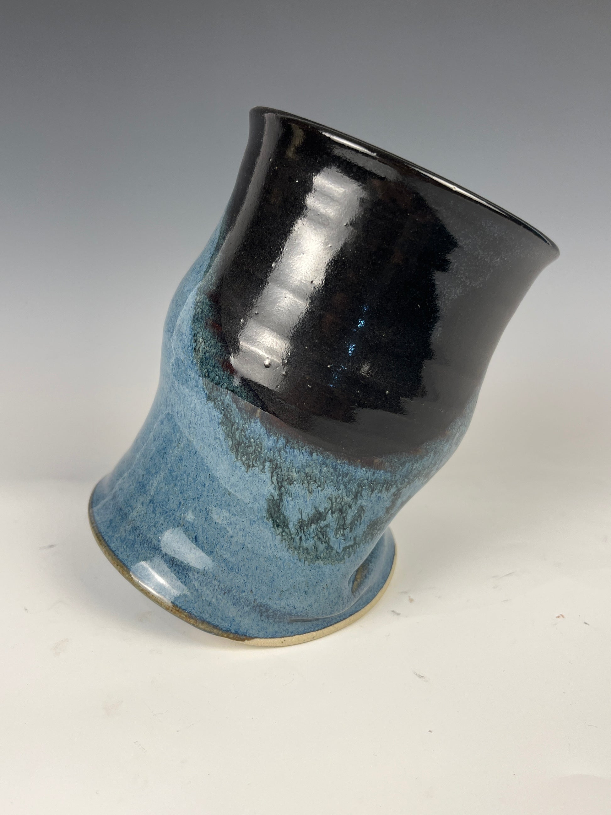 Blue and black colored salt pig. 12.5cm x 8.5cm, 14oz